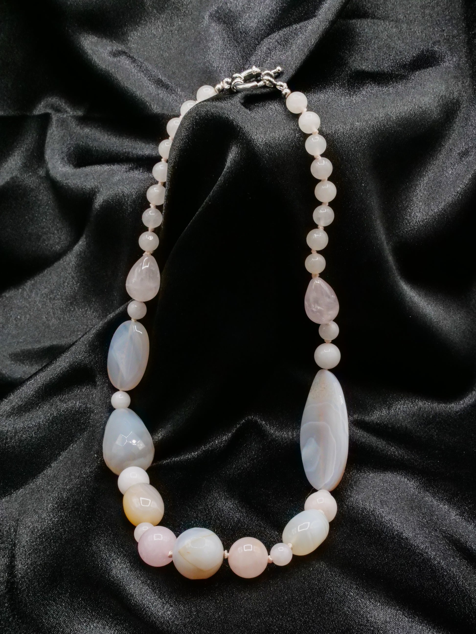 Rose quartz radiates gentle, unconditional love, while the grounding striations of banded agate echo the wisdom of tree rings and river stones, reminding us of what endures. Together, these stones speak to the beauty of softness rooted in strength.