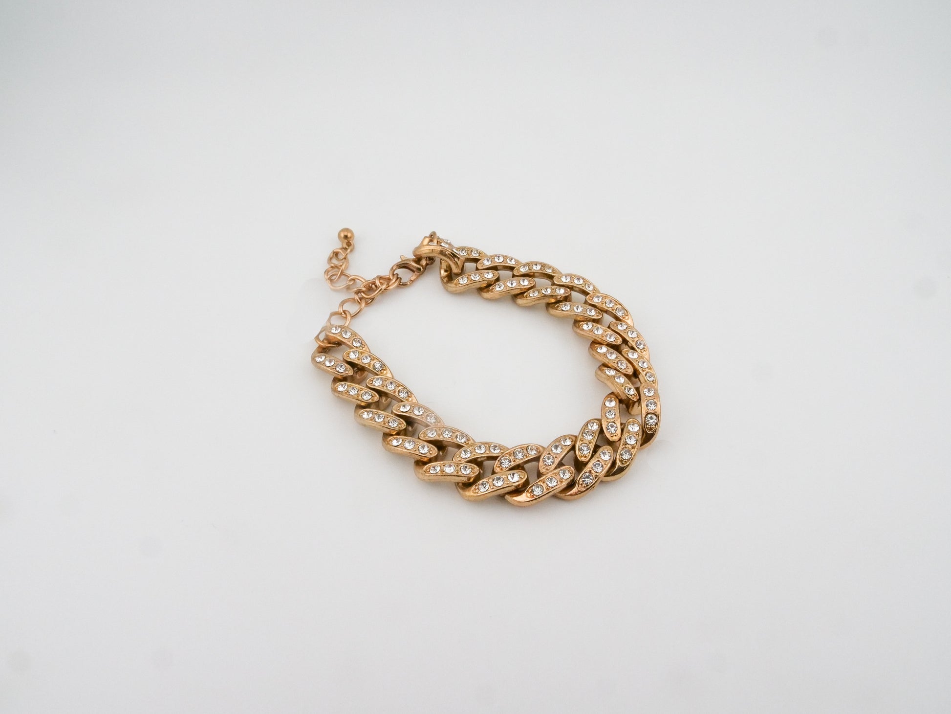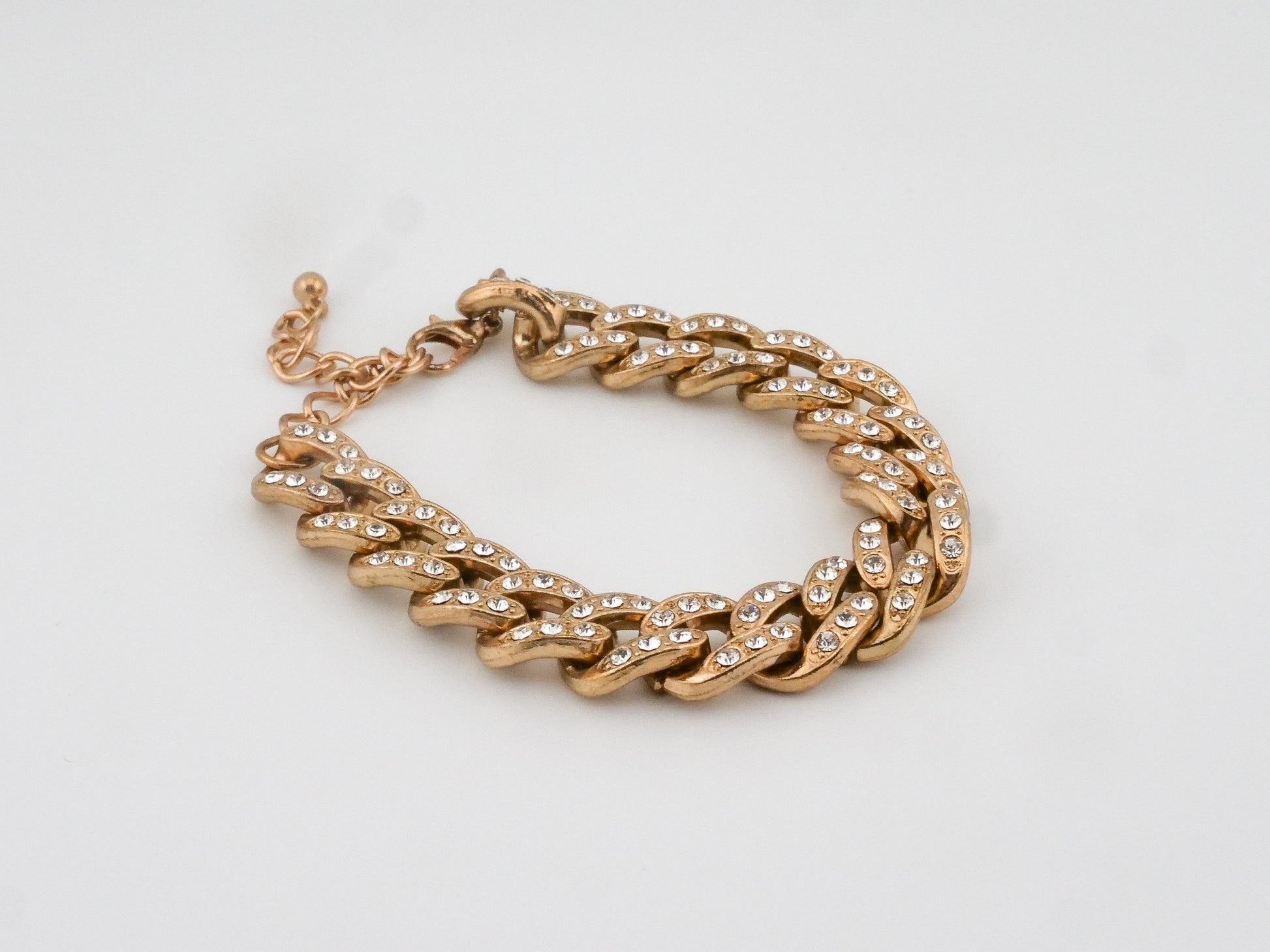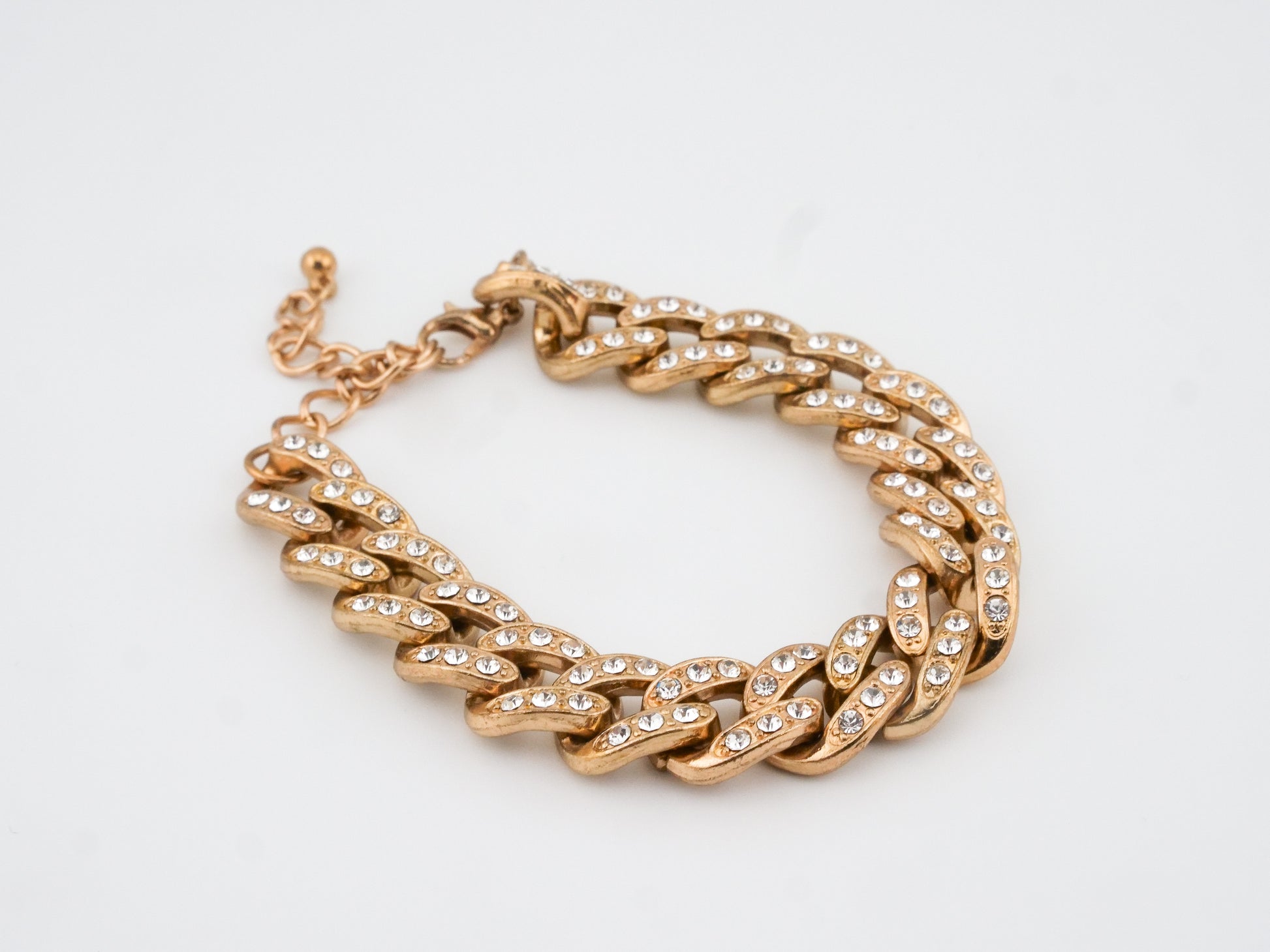 This vintage pavé crystal Cuban link bracelet brings the same iced-out glamour as the matching chain, but in a wrist-sized powerhouse. Each link is set with glittering crystals, catching the light with every move.