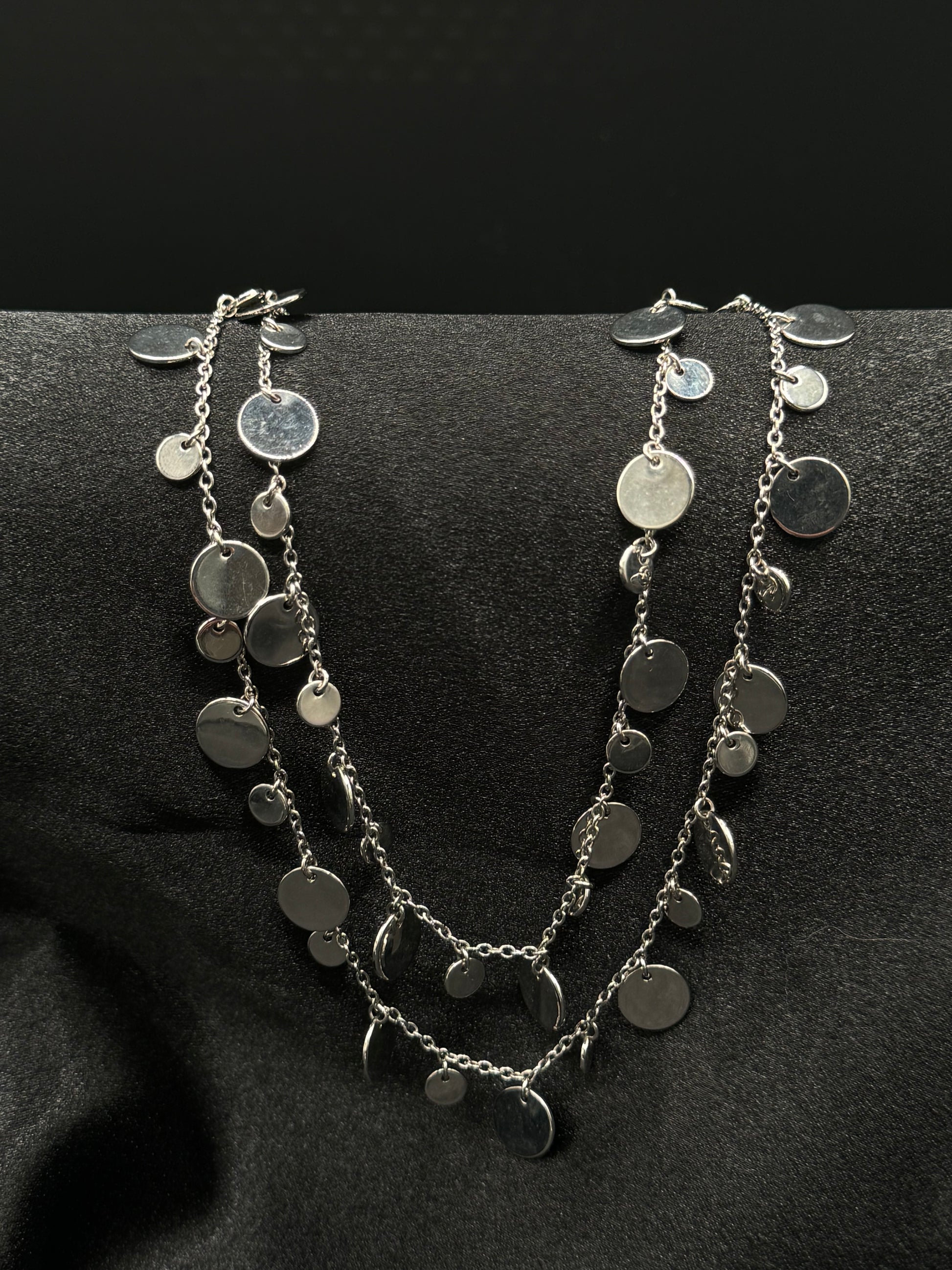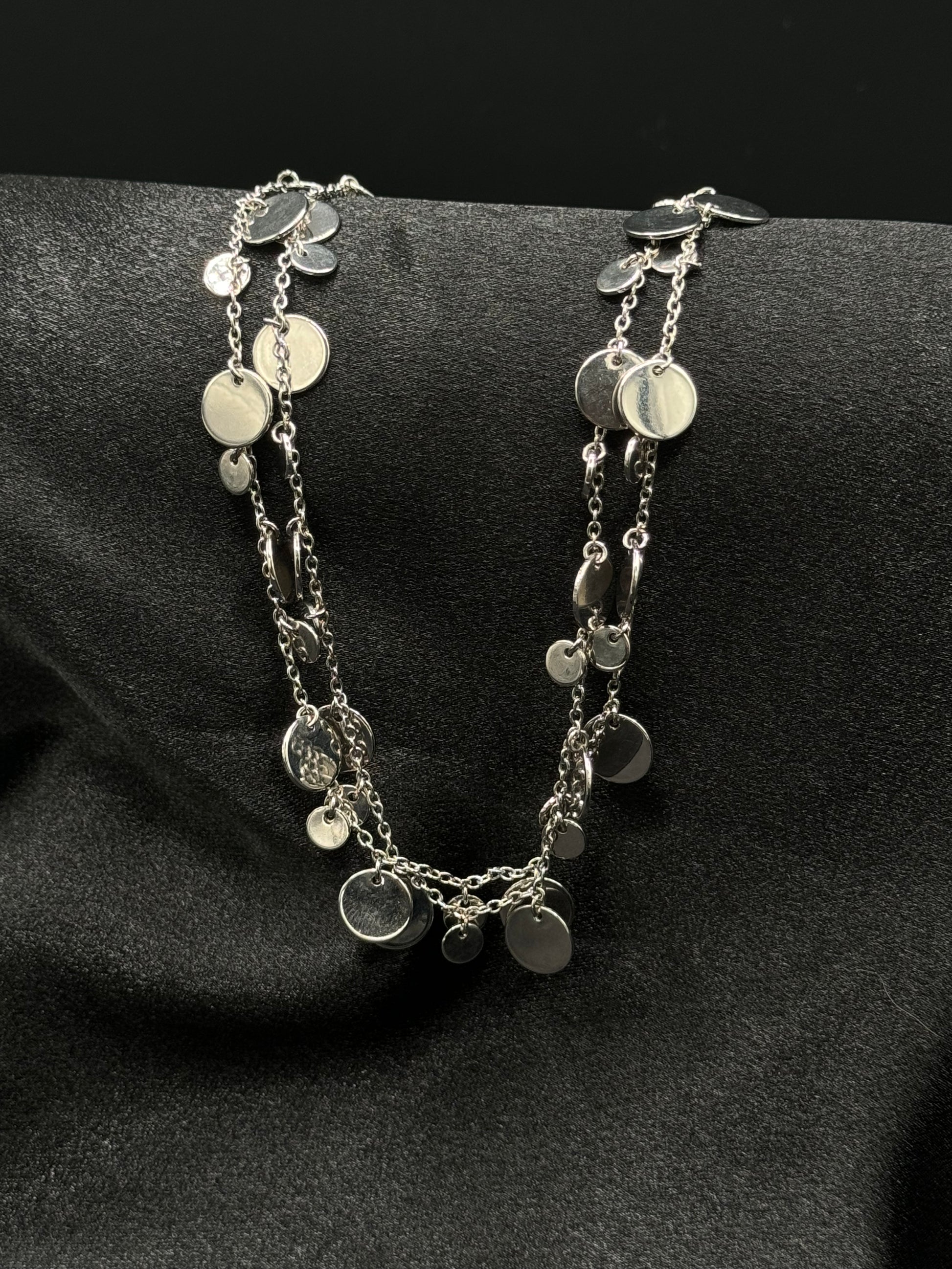 Mirrorplay lives up to its name—flashing, glinting, and catching the light with every movement. This cascading triple-strand necklace by Lia Sophia layers mirror-like silver discs along fine chains, creating a sense of playful rhythm and fluid reflection. Lightweight and easy to wear, it adds movement and interest to any neckline—day or night.