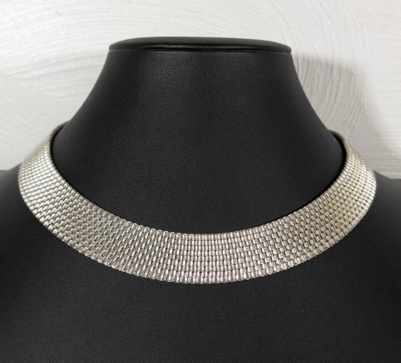 Moonlit Mesh – Vintage Silver Tone Collar Necklace
