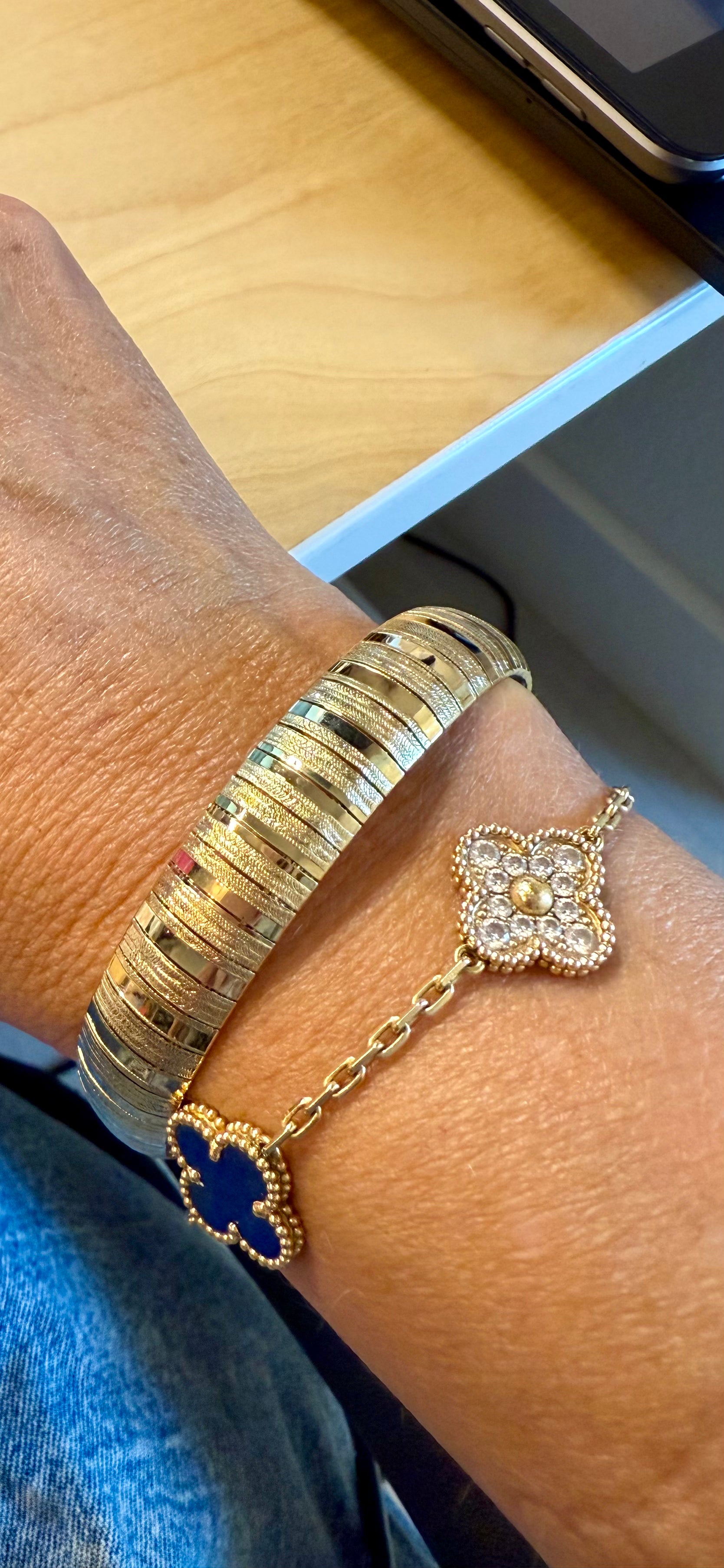 A rare Italian-crafted pair, this necklace and bracelet set in sterling silver 925 with a rich gold vermeil overlay offers the warmth of gold and the strength of silver. Each piece is woven in a supple braid that glimmers with every movement, catching the light like liquid sunshine. Whether worn together for impact or separately for everyday elegance, this set is an instant heirloom of Italian artistry.