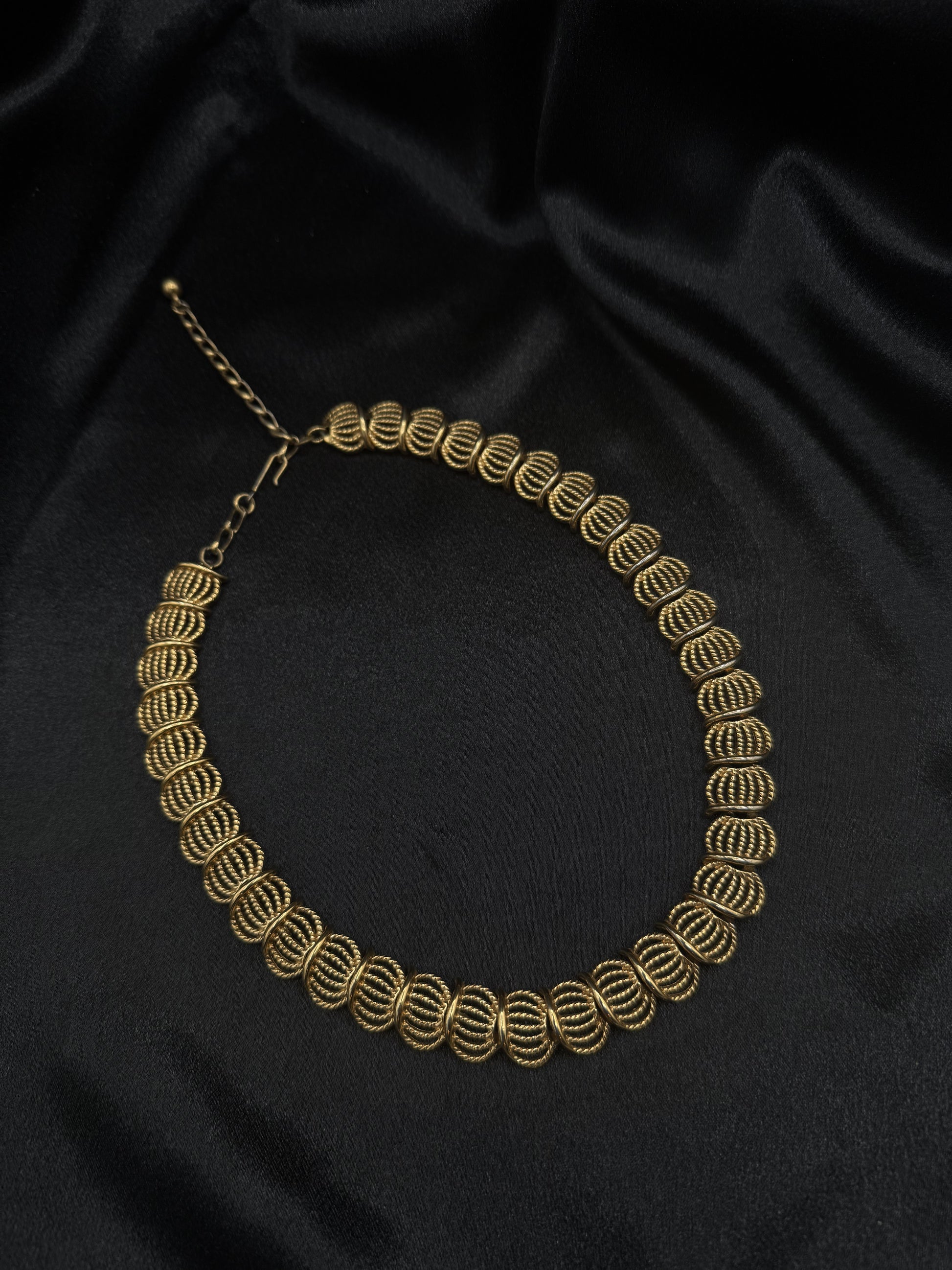 This vintage Napier set doesn’t just accessorize - it announces. Comprising a bold choker-style necklace and a perfectly matched bracelet, the Velvet Armor Set is a symphony of rope-textured loops that rest against the skin like sacred protection.